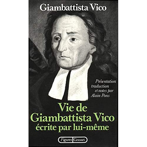 Edition Grasset et Flasquelle 1981, broché, 288 pages.L'autre traduction française de cette "VIE DE GIAMBATTISTA VICO écrite par lui même" et présentée par les éditions Allia, n'est autre que la reprise de la traduction de J. MICHELET ,qui date approximativement de 1894, connue pour être une interprétation libre et plutôt lacunaire...C'est donc une lecture totalement neuve que nous offre ici Alain PONS avec cette nouvelle traduction, qu'il aura fallu attendre près d'un siècle. Les trois textes qu'inclut l'ouvrage sont intelligemment introduits, et suivis d'abondantes et éclairantes annotations en fins de chapitres (mon seul petit rapproche rapport à cette édition).On y trouve une nouvelle traduction des "LETTRES" (p.147 à 183)La troisième partie de l'ouvrage (p.185 à 284) est occupée par la seule traduction française disponnible à l'heure actuelle de "LA M?THODE DES ?TUDES DE NOTRE TEMPS". ?galement disponible aux belles lettres dans sa version bilingue pour une quarantaine d'euros. C'est dire si cet ouvrage de 1982 reste encore d'un grand intérêt de nos jours vu son excellent rapport qualité prix...